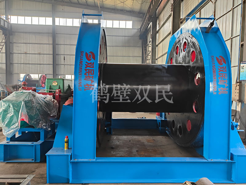 結構特點本絞車主要用于煤礦、金屬礦和非金屬礦豎井井筒掘進時懸吊吊盤、水泵、水管、注漿泵、風筒等掘進設備和張緊穩繩,該絞車系雙鋼絲繩懸吊。將減速機上的差動手把放在差動位置,若張緊穩繩,可使兩根穩繩的張緊力保持相等;若懸吊水管、注漿管、風筒等管類設備,可保證其被懸吊管類設備與地面保持垂直的狀態。如果懸吊吊盤等盤狀設備,需將其差動手把放在直通位置,才能實現兩繩繩速的一致。