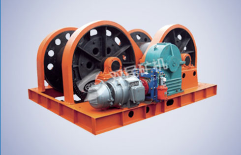 主要結(jié)構(gòu)機(jī)械部分:主軸裝置、減速器、聯(lián)軸器、制動器、液壓站、深度指示器及其傳動裝置、測速發(fā)電機(jī)裝置、護(hù)板、護(hù)罩、護(hù)欄。輔助機(jī)械部分:司機(jī)椅子、導(dǎo)向輪和天輪、車槽裝置。電器部分:主電機(jī)及電氣拖動裝置、電器控制裝置、電器保護(hù)裝置。電動機(jī)通過減速器驅(qū)動卷揚(yáng)筒旋轉(zhuǎn),鋼絲繩一端固定在卷筒上,另一端經(jīng)卷筒纏繞后,通過井架天輪懸掛提升容器。隨著卷筒的旋轉(zhuǎn),實(shí)現(xiàn)容器的上升和下放。
