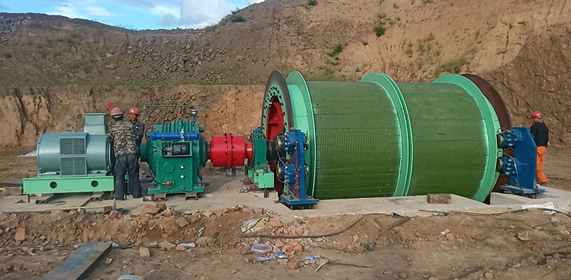 礦井提升機主要用于牽引煤礦等輔助加工工作,煤礦等礦山,道路傾角小于30度。電機通過減速機提供滾筒轉矩,鋼絲繩纏繞在線圈上,剎車裝置控制運行并停止運行,達到調度加工的目的。