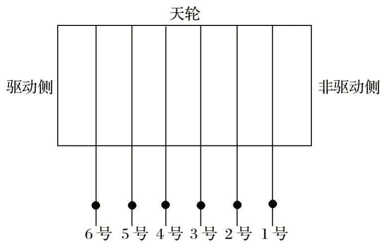 在提升機正常提升時,分別在主軸承的驅動端和非驅動端,對主軸承的水平、垂直和軸向 3 個方向進行振動監測。