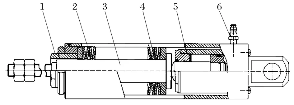 1.螺紋內套筒 2.外套筒 3.驅動器拉桿 4.碟形彈簧 5.千斤頂 6.管接頭