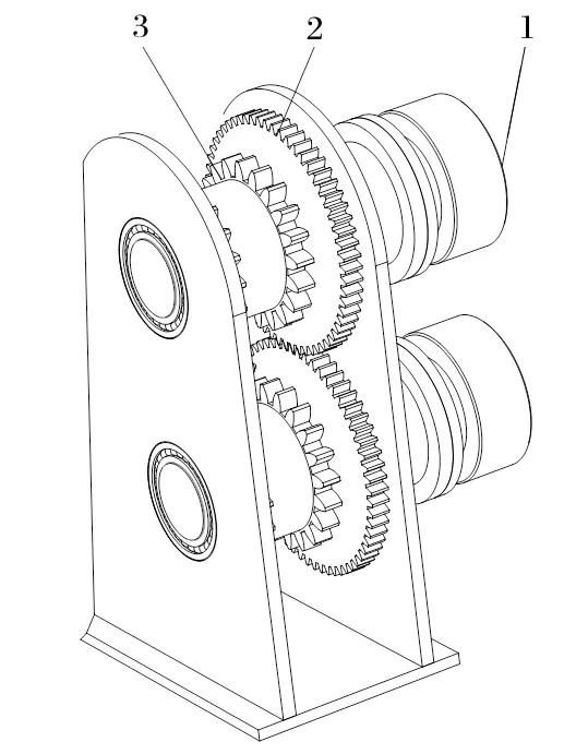 在現有研究的基礎上,本研究提出在連接兩鏈輪的軸上加一對同步齒輪。這樣不僅可以實現連續送繩,而且當兩液壓馬達輸出的轉速不同步時,可通過同步齒輪強制將兩軸轉速相同,從而實現兩鏈輪轉速同步,避免鋼絲繩打滑等問題。但這樣會導致同步齒輪受到較大的沖擊,如受到來自同步齒輪的相互擠壓,或液壓馬達輸出轉矩不穩定時對齒輪的影響等,因此需要對同步齒輪進行進一步的分析。