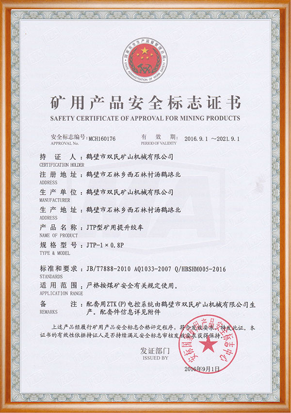 礦用產品安全標志證書